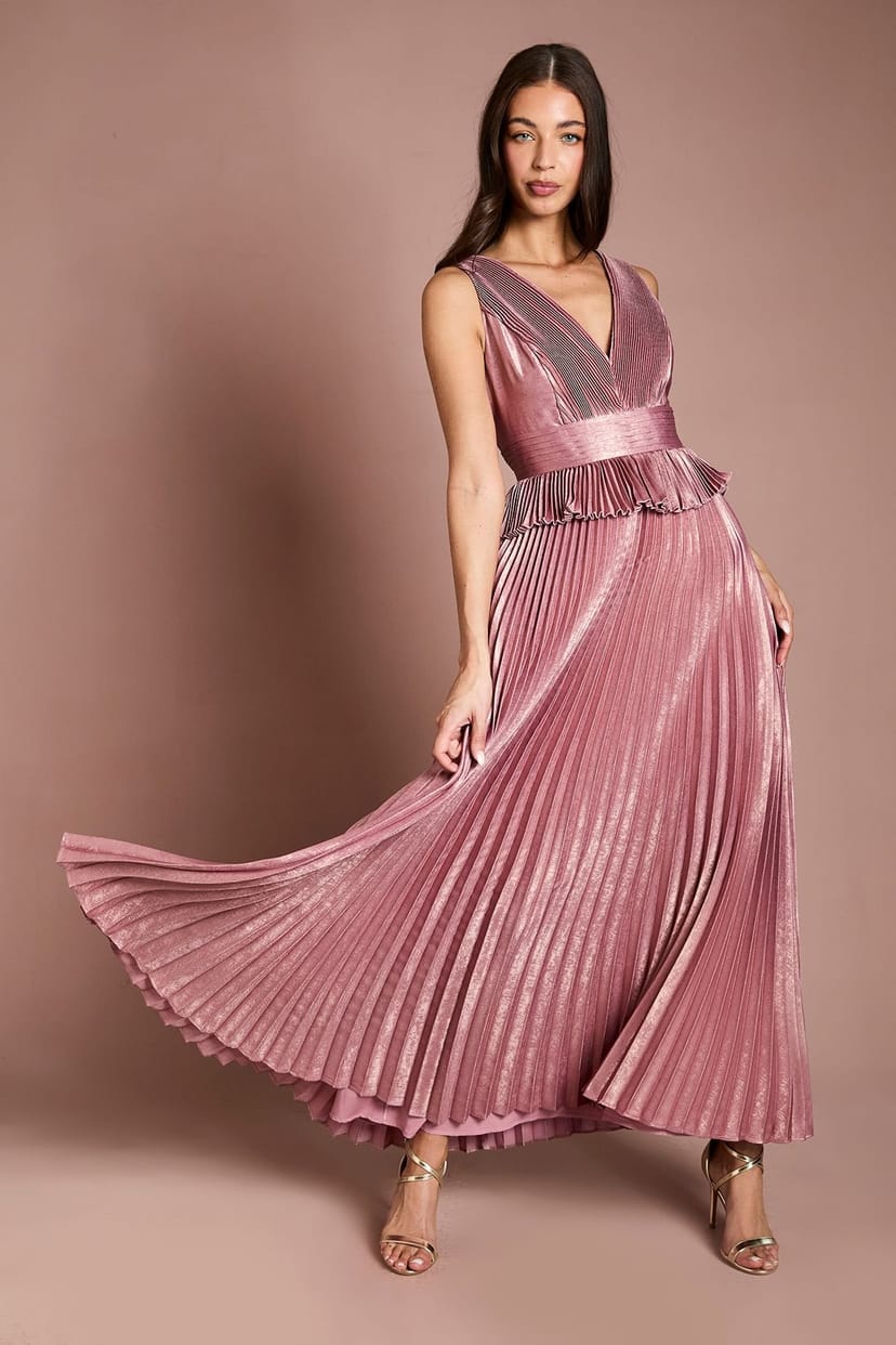 The Coast Pink Metallic Pleated Maxi Dress With Peplum is ideal for evening, party, date-night.