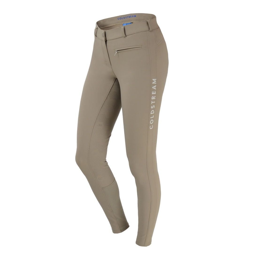 The Coldstream Taupe Meryl Fiber Breeches for Women is made from meryl fiber, silicone.