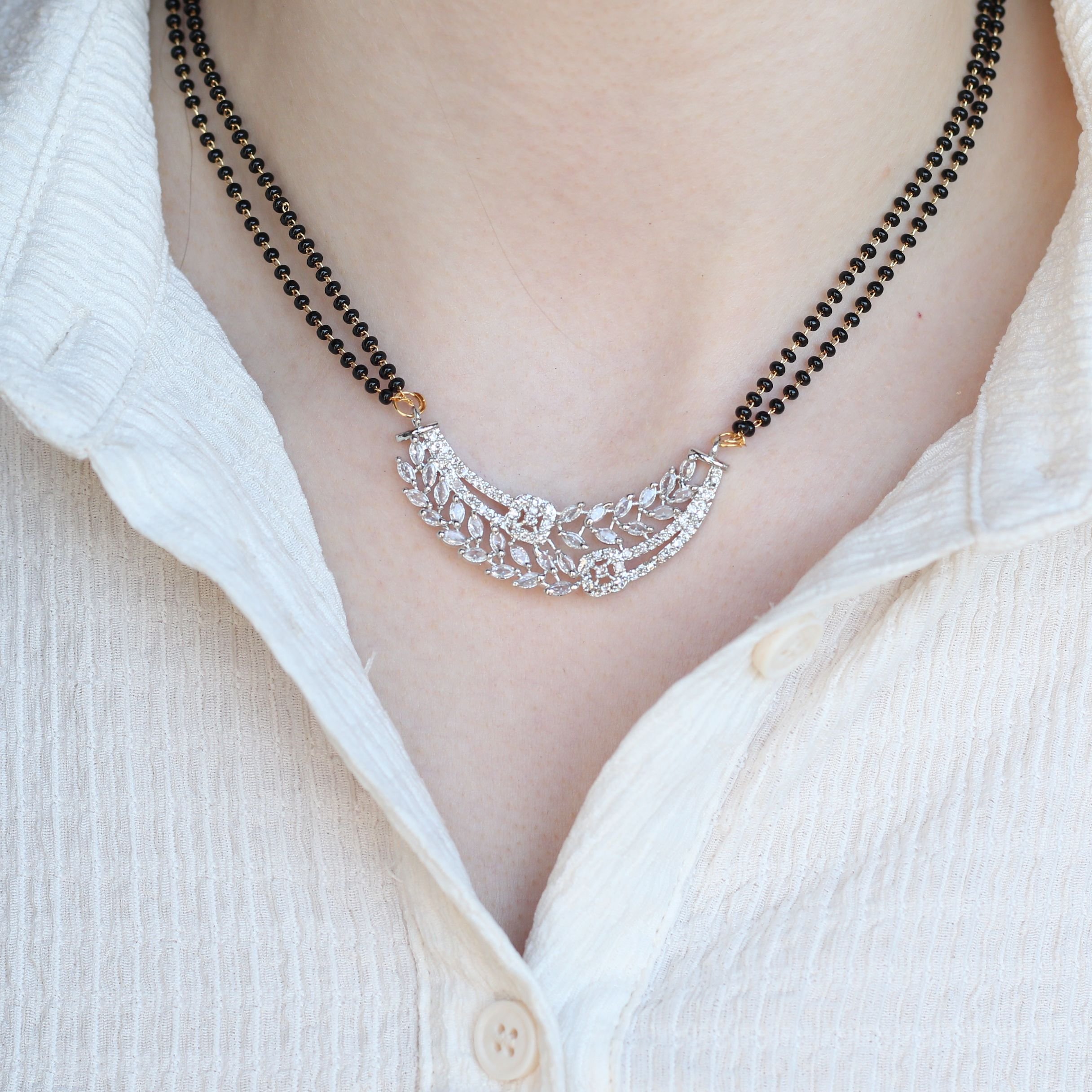 The The Colourful Aura Silver Floral Zircon Mangalsutra Necklace is made from beads, zircon, brass.