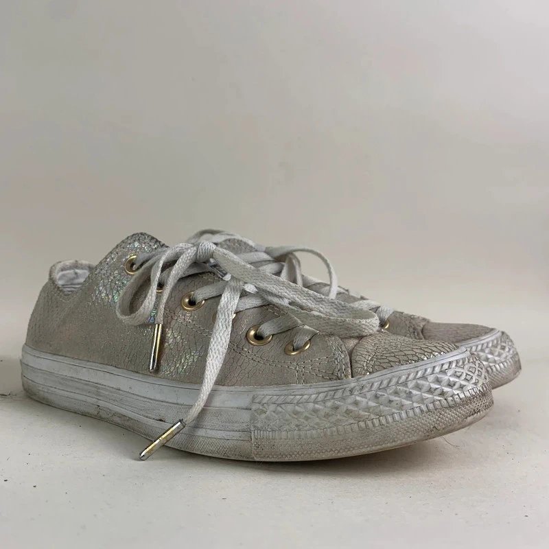 Cream Lace Up Casual Trainers by Converse. Crafted from leather upper with a snakeskin texture, these trainers feature a lace-up closure and a cream color. Perfect for everyday wear, they offer a casual and stylish look.