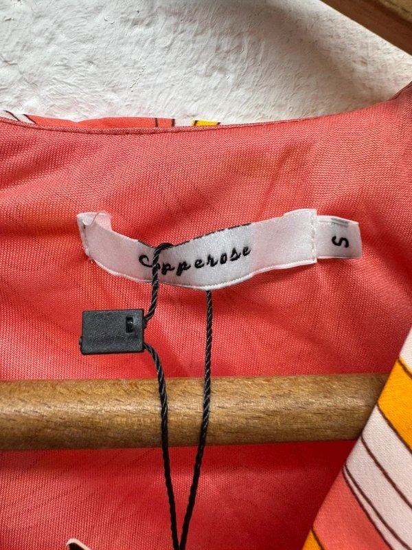 The Copperose Orange Yellow Ruched Dress is available in sizes S.