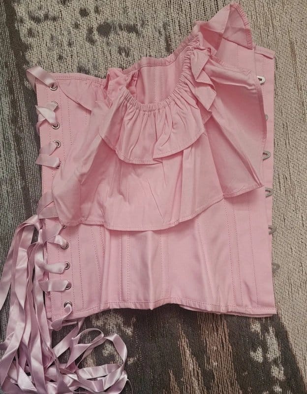 The Corset Story Pink Cotton Layered Off Shoulder Corset Top is available in sizes S.