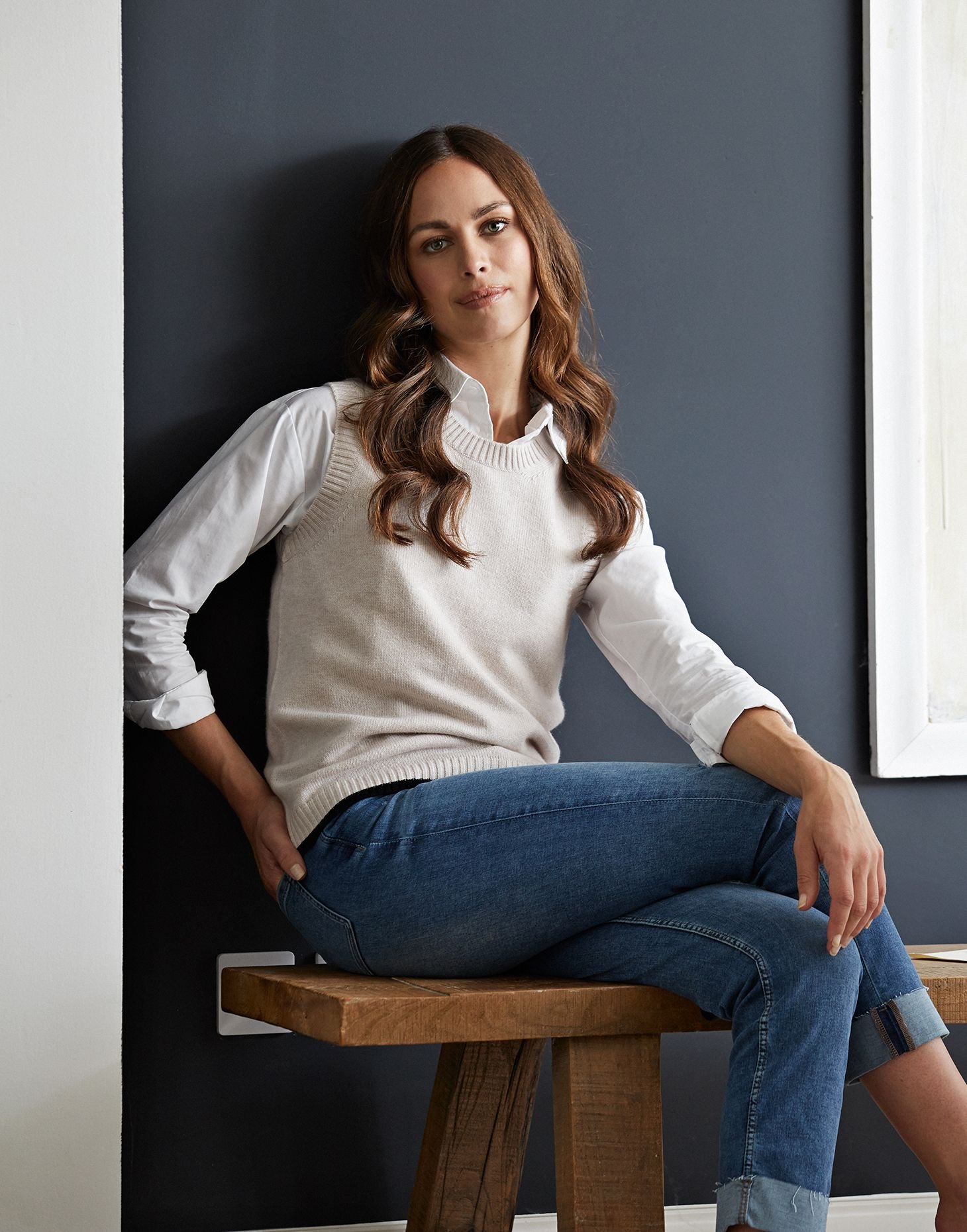 Pair with dark wash slim jeans and white ankle boots for a casual yet stylish look.