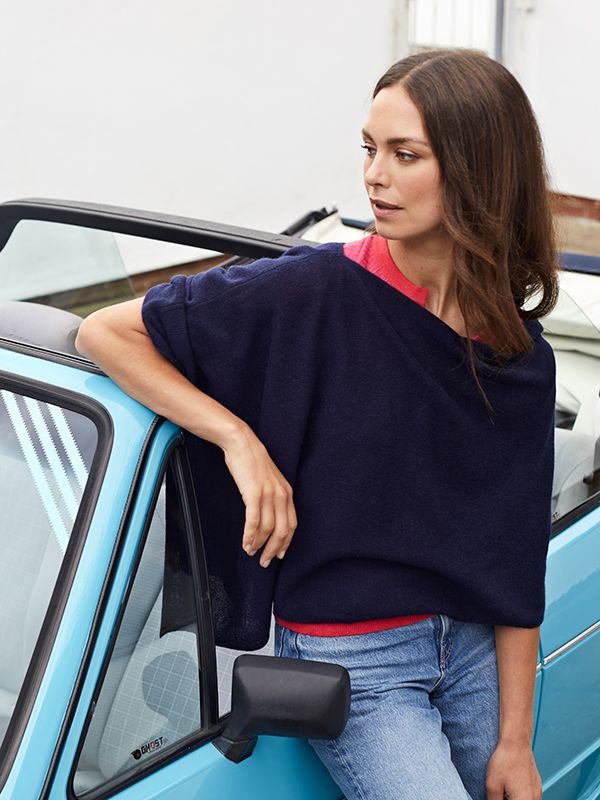 The Cove Navy Cashmere Poncho for Women is made from cashmere.