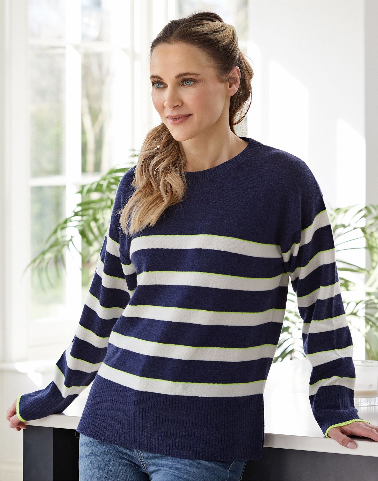 The Cove Navy Breton Stripe Jumper is ideal for casual, everyday, work.