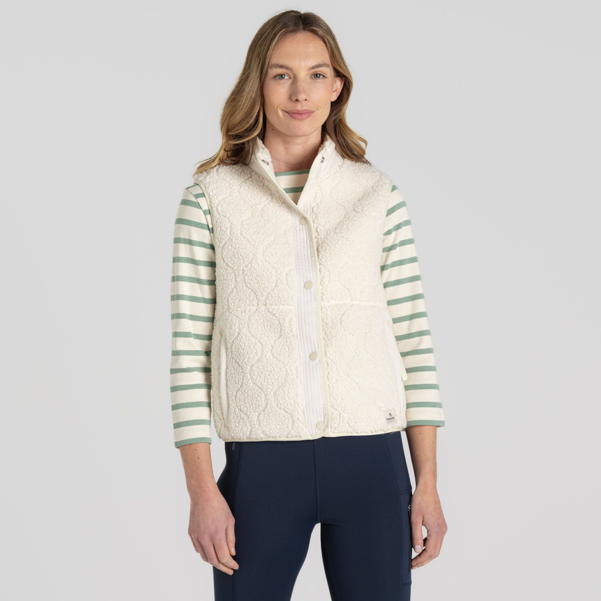 The Craghoppers Beige Sherpa Insulating Gillet is made from sheer fleece.