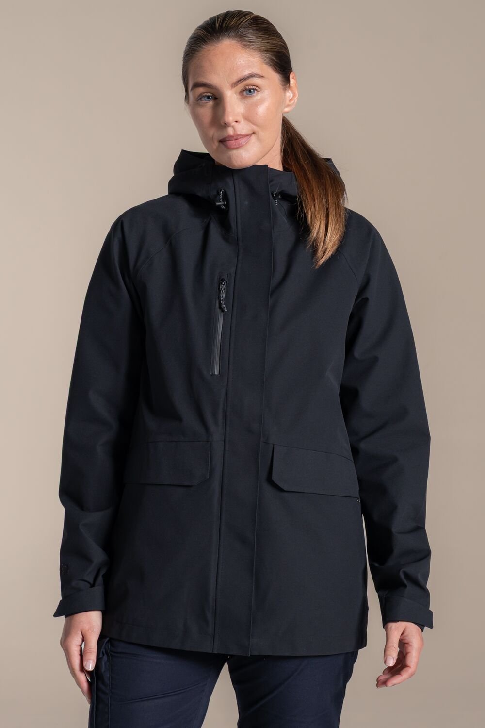 The Craghoppers Women's Black Stretch Long Jacket is ideal for outdoor, hiking, travel.
