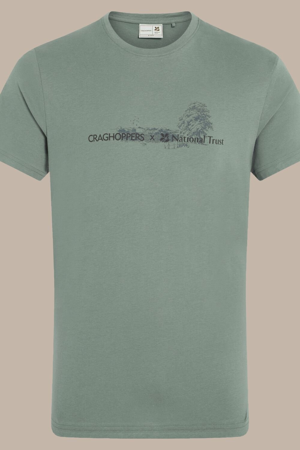 Stylish crew-neck t-shirt from Craghoppers in green cotton. Features a graphic print on the chest. Ideal for casual wear and outdoor activities.