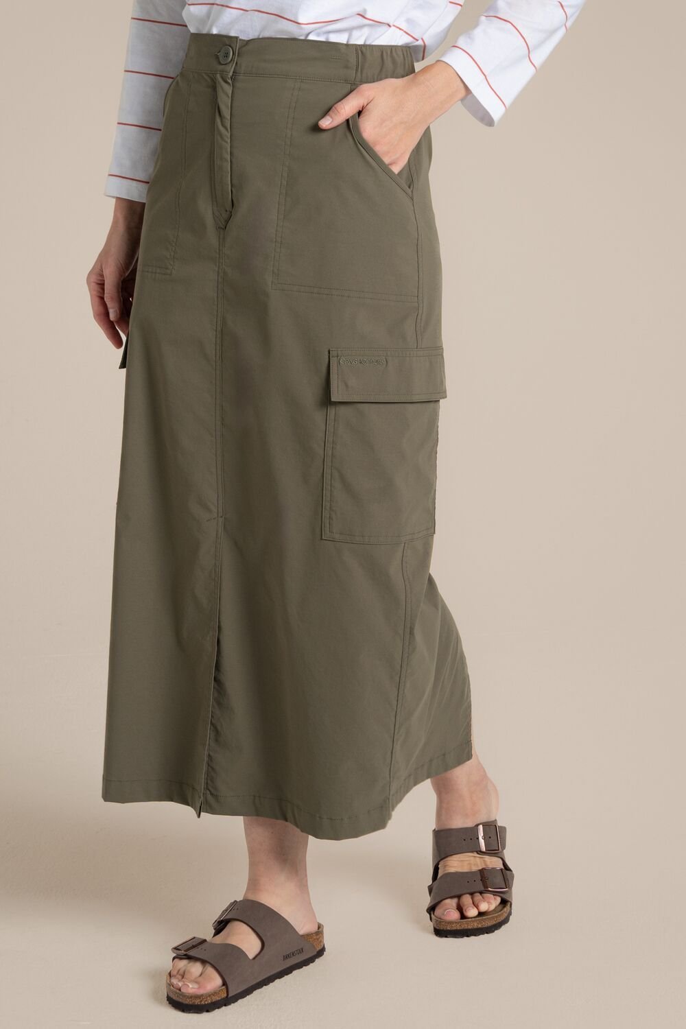 The Craghoppers Green NosiLife Pro Midi Skirt is ideal for outdoor, adventure, travel.