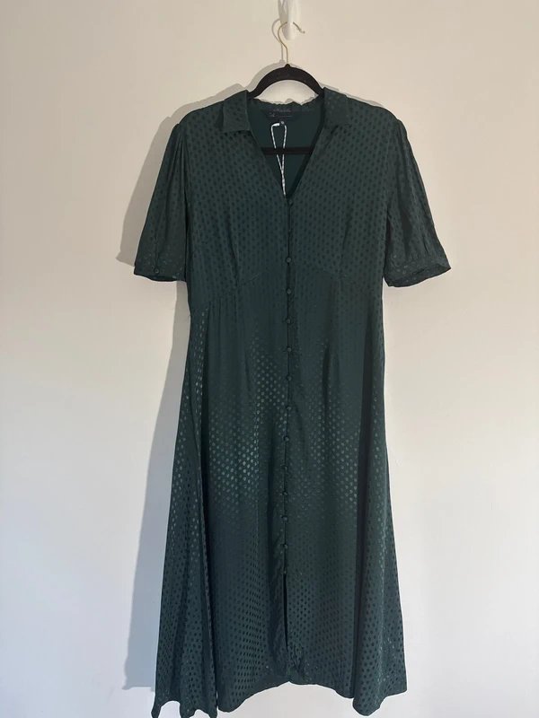 The Crew Clothing Company Green Dotty Midi Dress is available in sizes L.