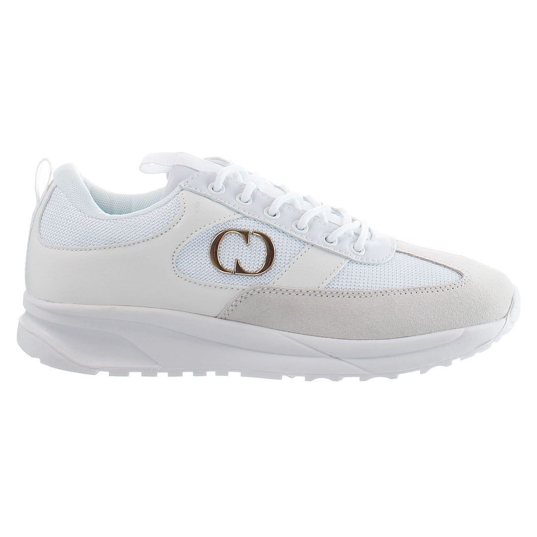 Stylish white synthetic trainers by Criminal Damage. Featuring a lace-up design and a gold logo on the side. Perfect for a casual look.