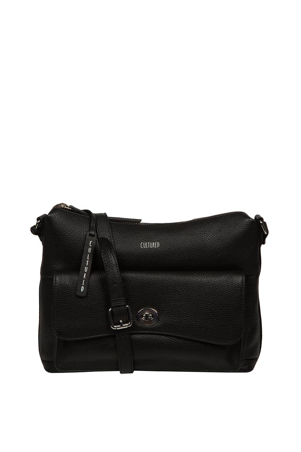 The Cultured London Black Leather Shoulder Bag is made from leather.