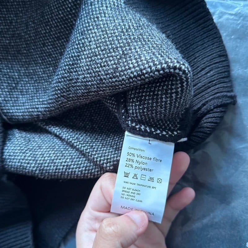 This black knitted jumper by Cupid features a crew neckline, long sleeves, and a zip front closure. Made from a blend of viscose, nylon, and polyester, it offers a baggy fit perfect for a casual streetwear look.