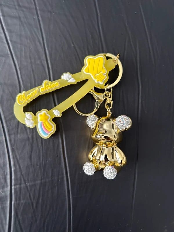 The Cute Gold Bear & Yellow Charm Keychain is ideal for everyday, gifting.
