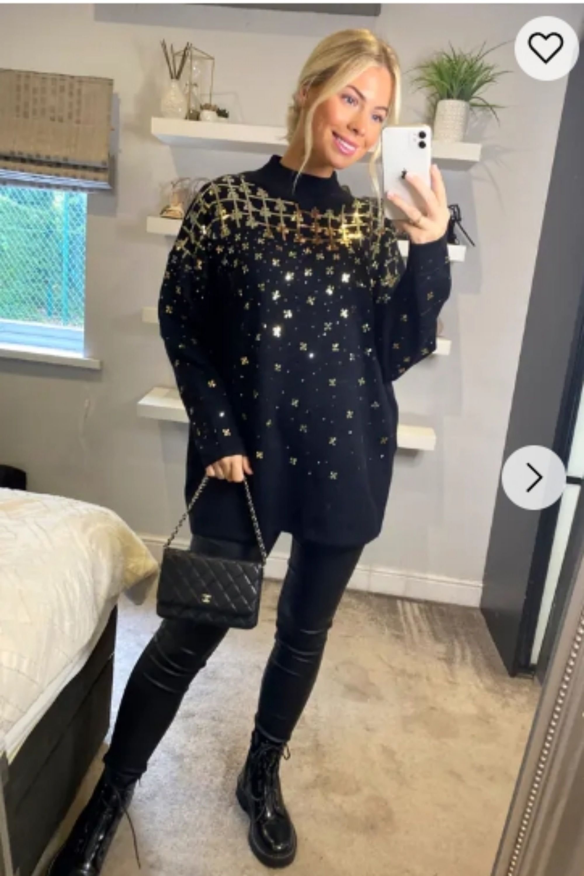 The CY Black Sequin Embellished Long Sleeves Jumper is available in sizes ONE SIZE.