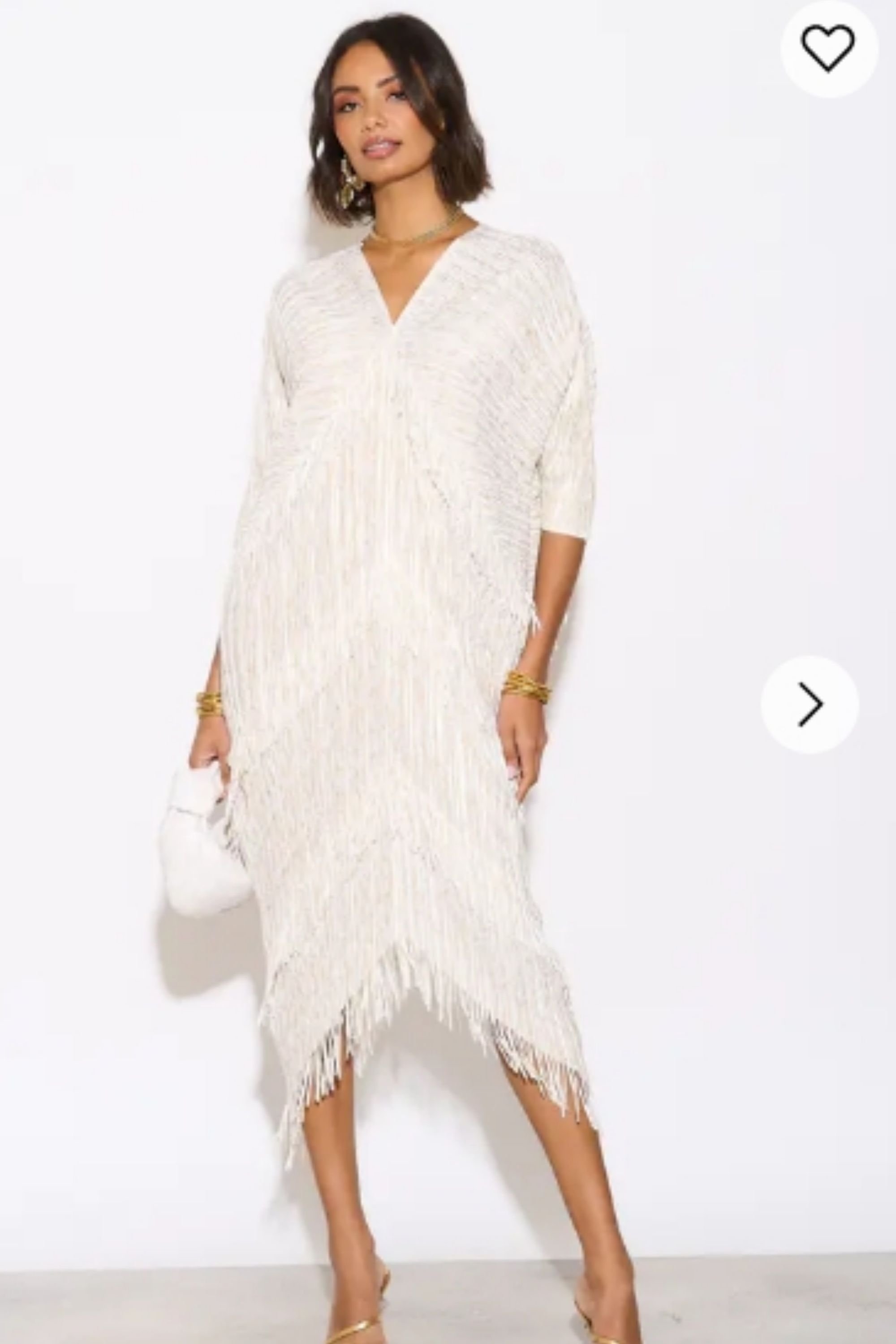 The CY White Fringed Tassel Pleated Midi Dress is available in sizes ONE SIZE.