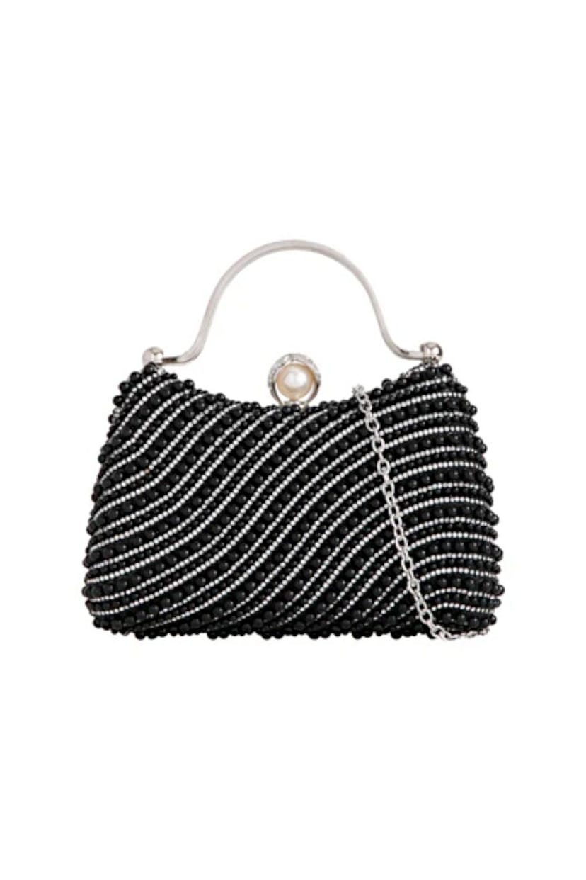 The D2C Black Pearl Embellished Top Handle Clutch Bag is ideal for evening, special occasion, party.