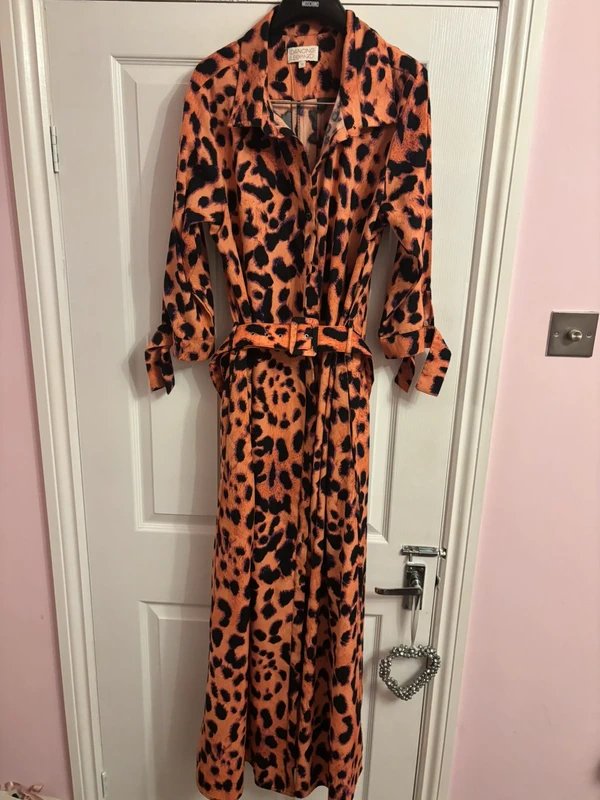The Dancing Leopard Leopard Print Long Sleeve Dress in Orange is available in sizes L.