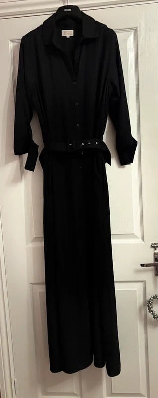 See all outfit ideasStylish long-sleeve shirt dress by Dancing Leopard in black. Features a button-down front, belted waist, and elegant silhouette. Perfect for casual or party wear.