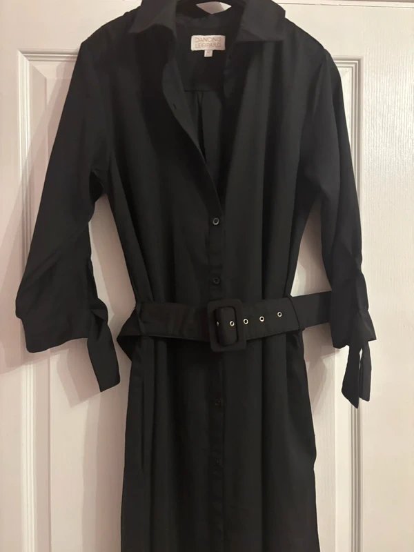 The Dancing Leopard Black Long Sleeve Shirt Dress is available in sizes M.