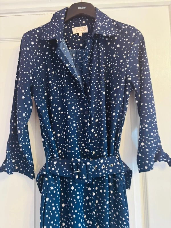 The Dancing Leopard Starry Belted Jumpsuit in Navy is available in sizes M.