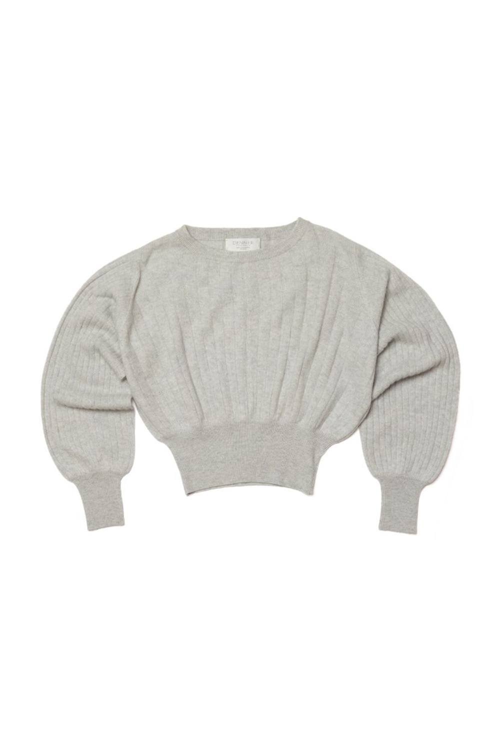 The Denner Cashmere Light Grey Ribbed Crew Top is made from cashmere.