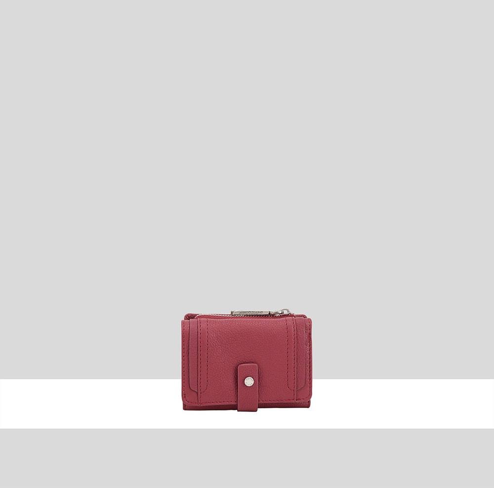 Compact Crimson leather purse by Dents, designed for everyday use. Features multiple compartments, a secure zip pocket, and a snap closure for safety. Made from soft, quality leather, it's an ideal accessory for staying organised.