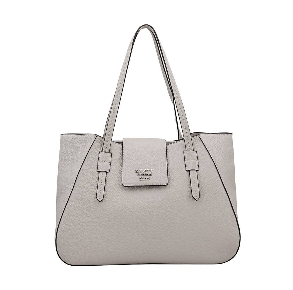 Stylish Dents Lumara shoulder bag in grey leather. Features a top zipped middle compartment and spacious side compartments, perfect for work or travel essentials.