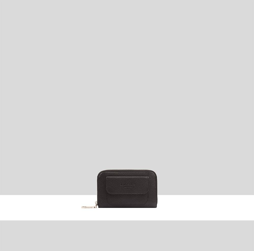 Compact and stylish Dents Eleni purse in jet black leather, designed for effortless organisation with a touch of class. Features a zip-around design, multiple sections for cards, notes, and receipts, and a secure zipped pocket for coins.