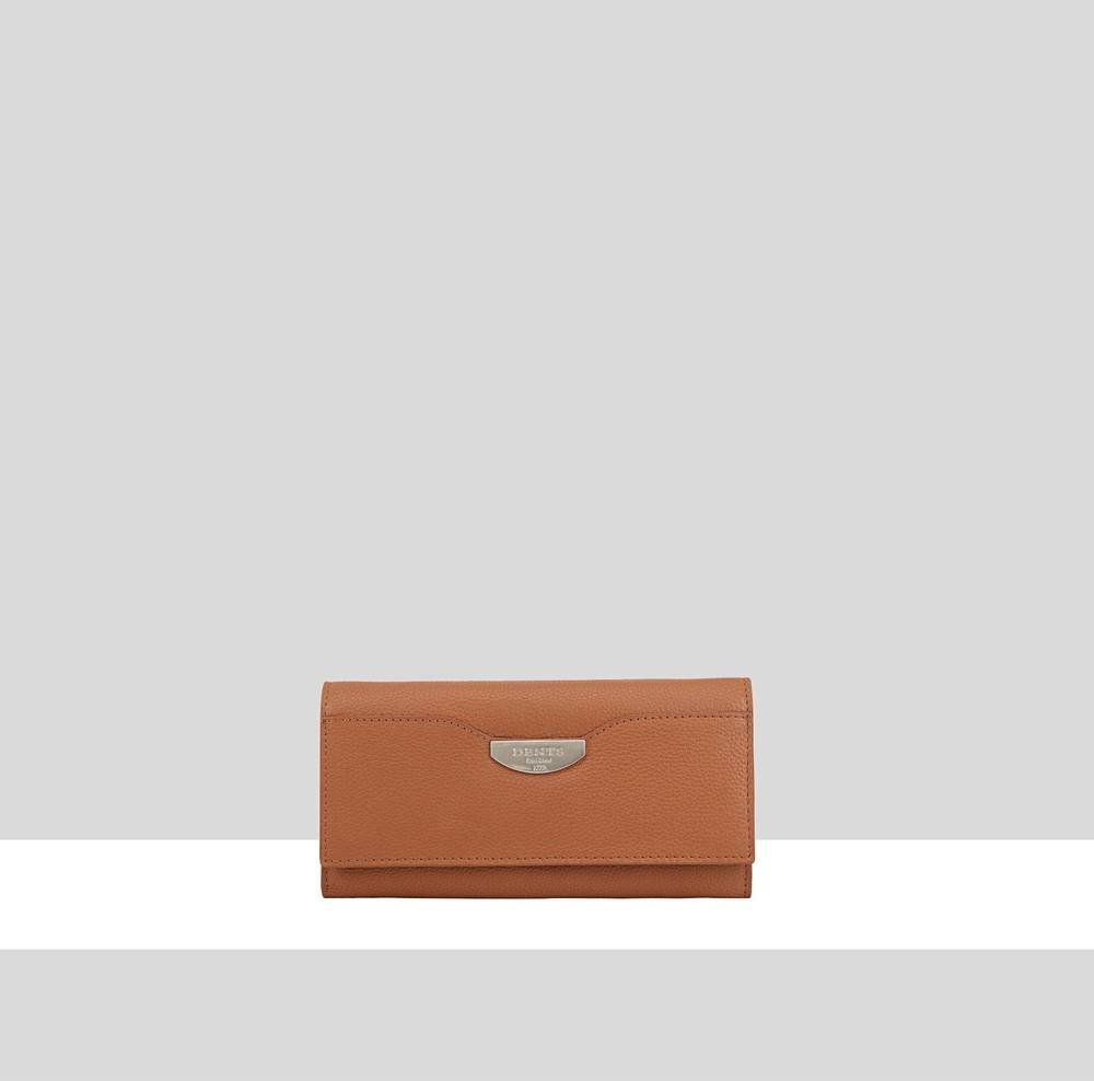 Stylish Dents Elodie purse in tan leather with multiple card slots, a zipped pocket, and space for notes. A perfect blend of elegance and practicality.