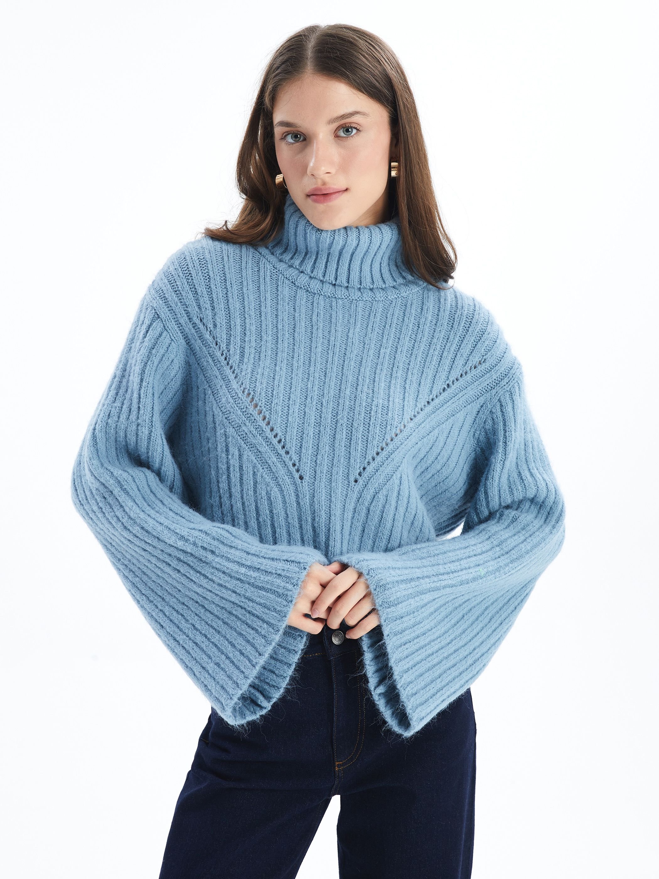 The Dexia Blue Cable Knit Turtleneck Jumper is made from wool, cotton.