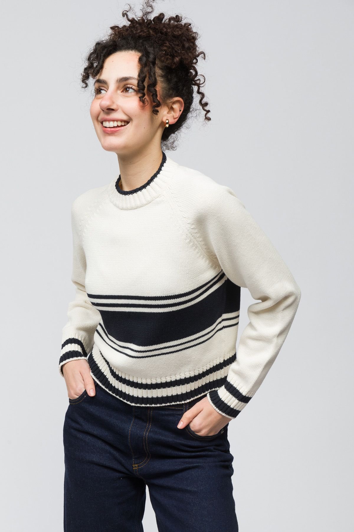 The Dexia Women's Ecru Striped Jumper is ideal for casual, everyday.