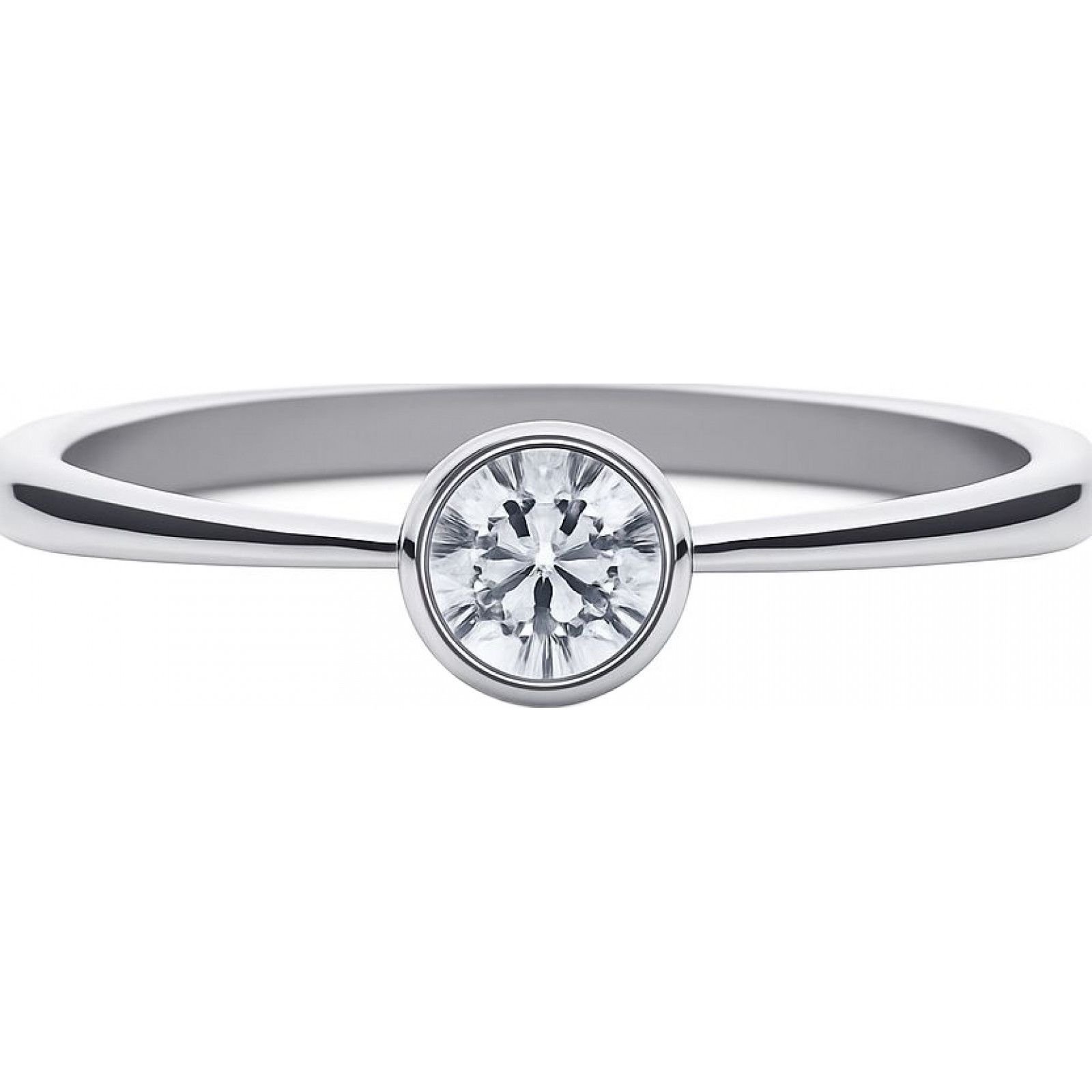 Elegant silver ring featuring a round, brilliant-cut diamond set in a four-prong setting. A timeless piece for any occasion.