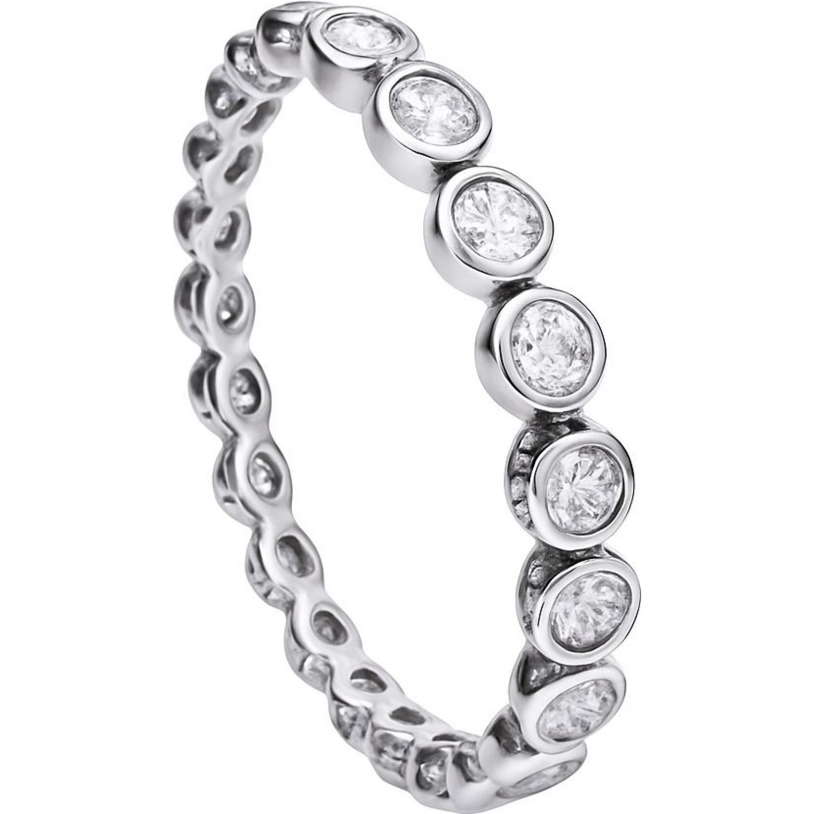 This Diamonfire ring features a band of silver with seven round-cut diamonds set in a row. The design is both elegant and modern, perfect for any occasion.