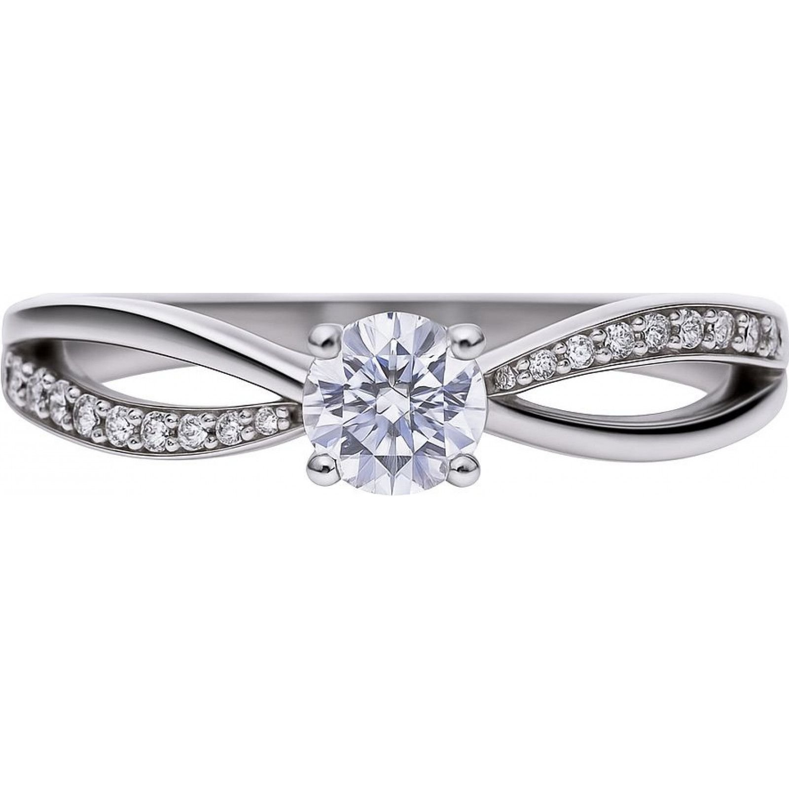 Elegant silver ring featuring a central round diamond surrounded by smaller pavé diamonds. The band has a wavy design for a touch of sophistication. Perfect for special occasions or as a statement piece.