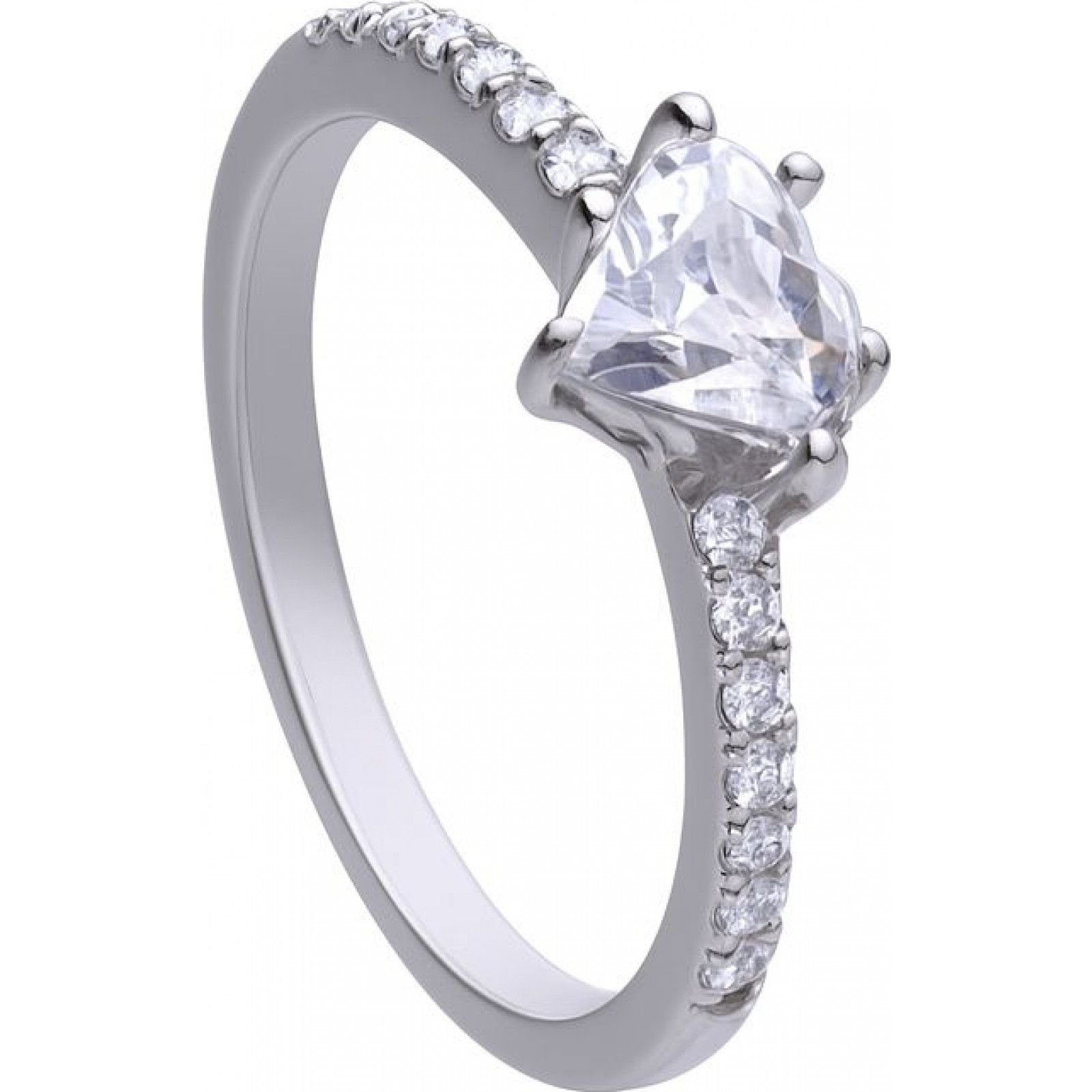 This Diamonfire ring features a heart-shaped diamond surrounded by smaller diamonds, set in a silver band. A perfect blend of elegance and sparkle.