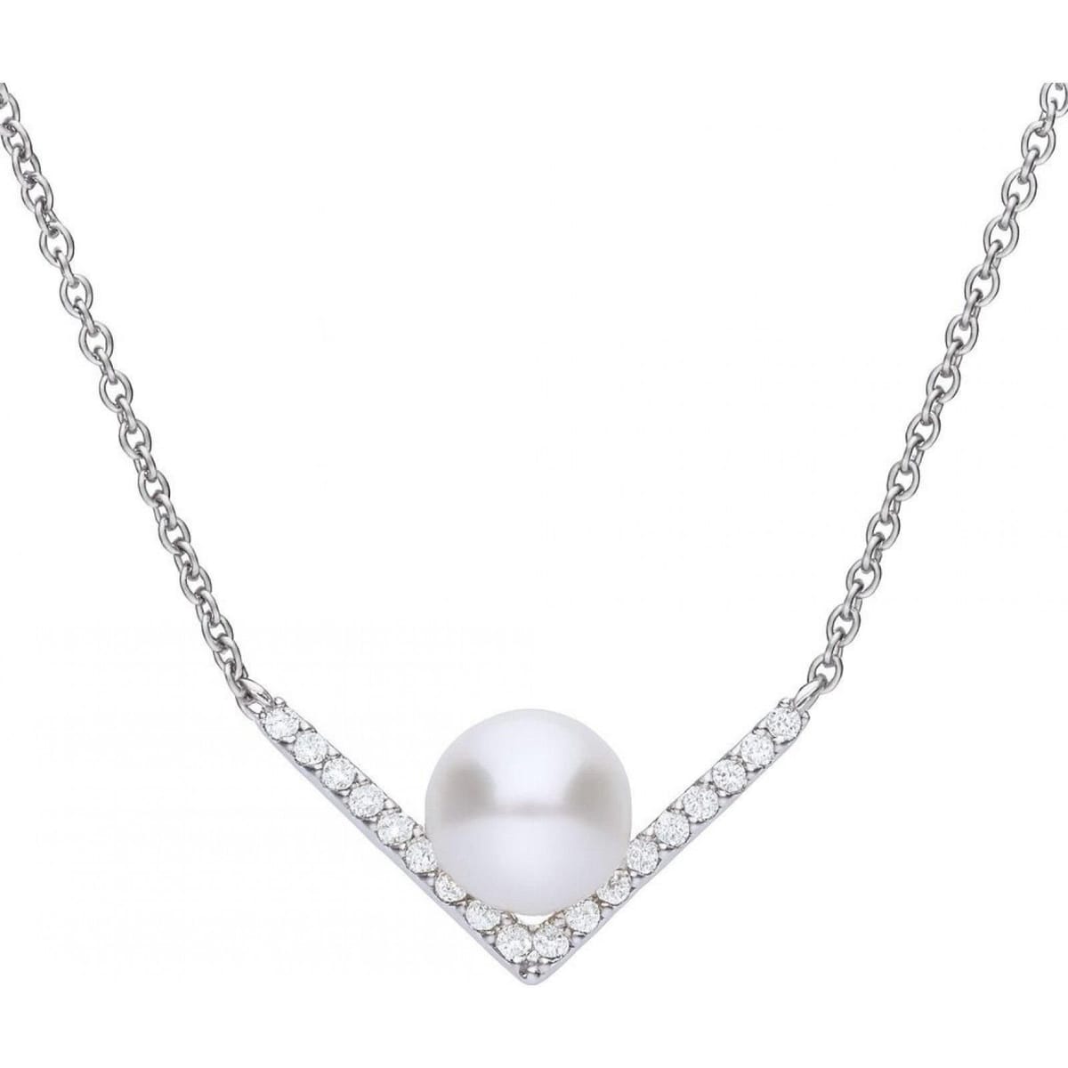 The Diamonfire Silver Pearl and Diamond Necklace is made from silver, pearl, diamond.