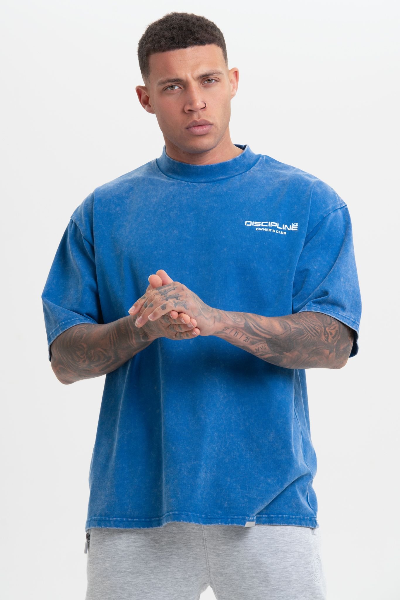 The Discipline 365 Men's Blue Oversized T-Shirt with Brand Detail is available in sizes EXTRA LARGE, L.