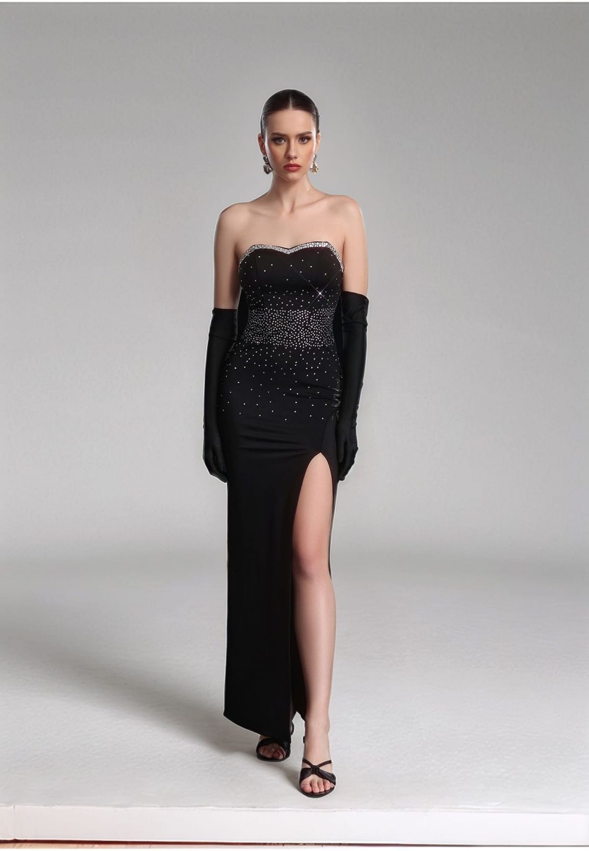 The Divine Grace Black Embellished Strapless Maxi Dress is ideal for evening, date-night, party.