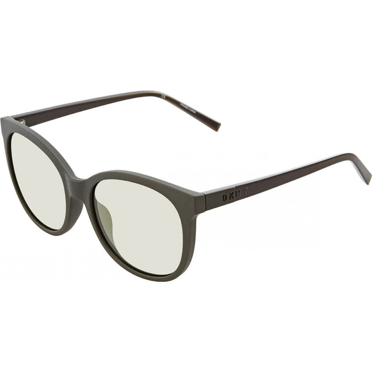 Stylish DKNY DK527S-320 sunglasses in green. Featuring a cat-eye frame and clear lenses, these sunglasses are perfect for adding a touch of sophistication to any outfit.