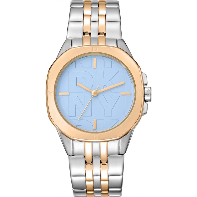 Stylish DKNY Ladies Brooklyn Watch with a multicolor dial and a two-tone metal bracelet. Features a quartz movement for precise timekeeping. Ideal for casual and formal occasions.
