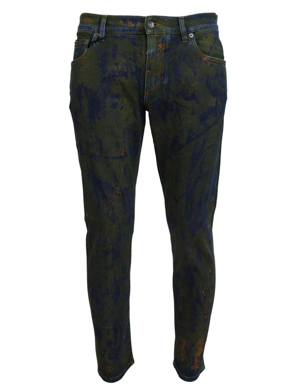 Stylish skinny denim jeans by Dolce & Gabbana in a unique blue and green wash. Crafted from a blend of 98% cotton and 2% elastane, these jeans offer a comfortable and stretchy fit. Perfect for casual outings.