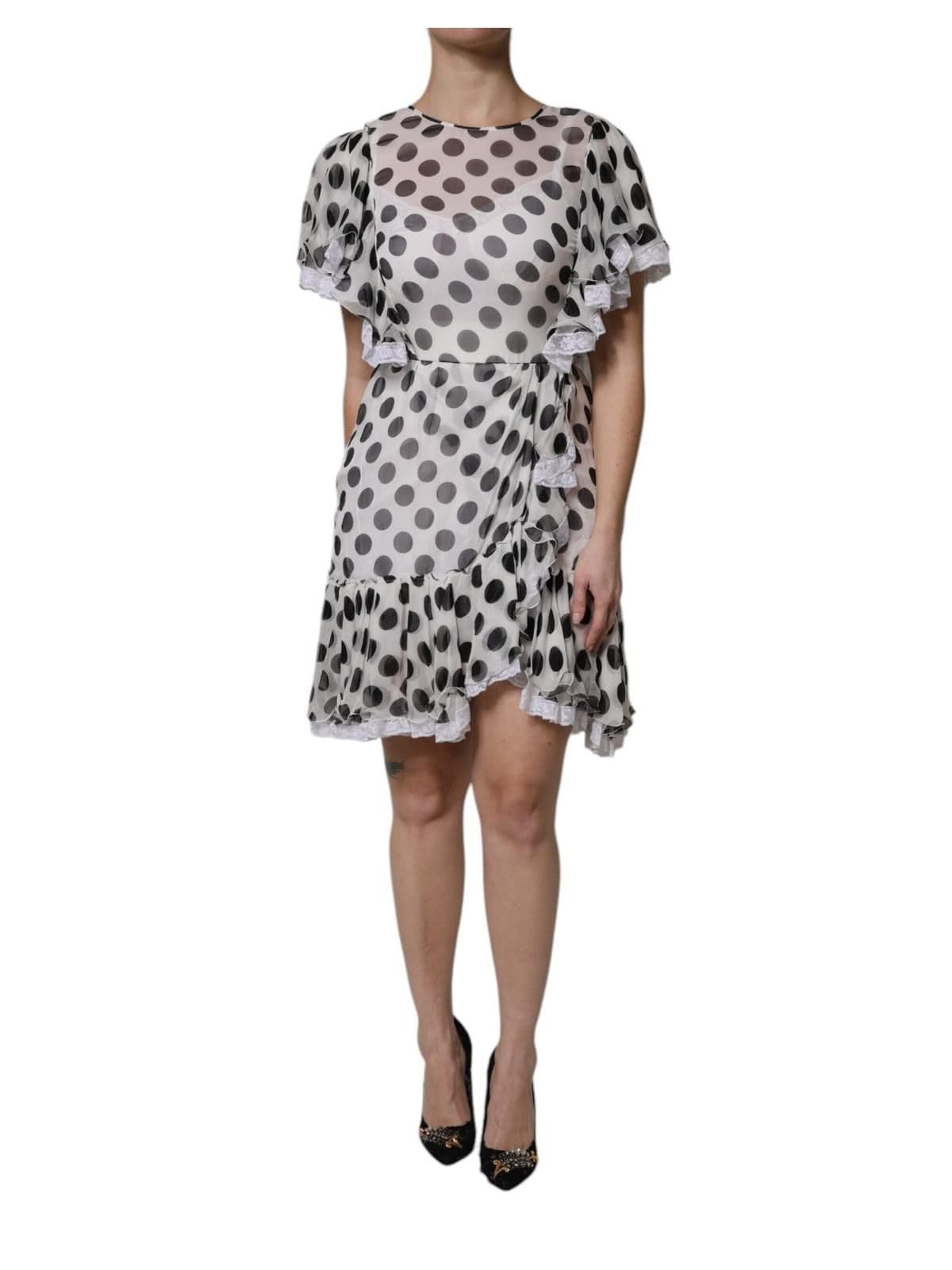 The Dolce & Gabbana White Polka Dotted Silk Blend A-line Dress is available in sizes 4.