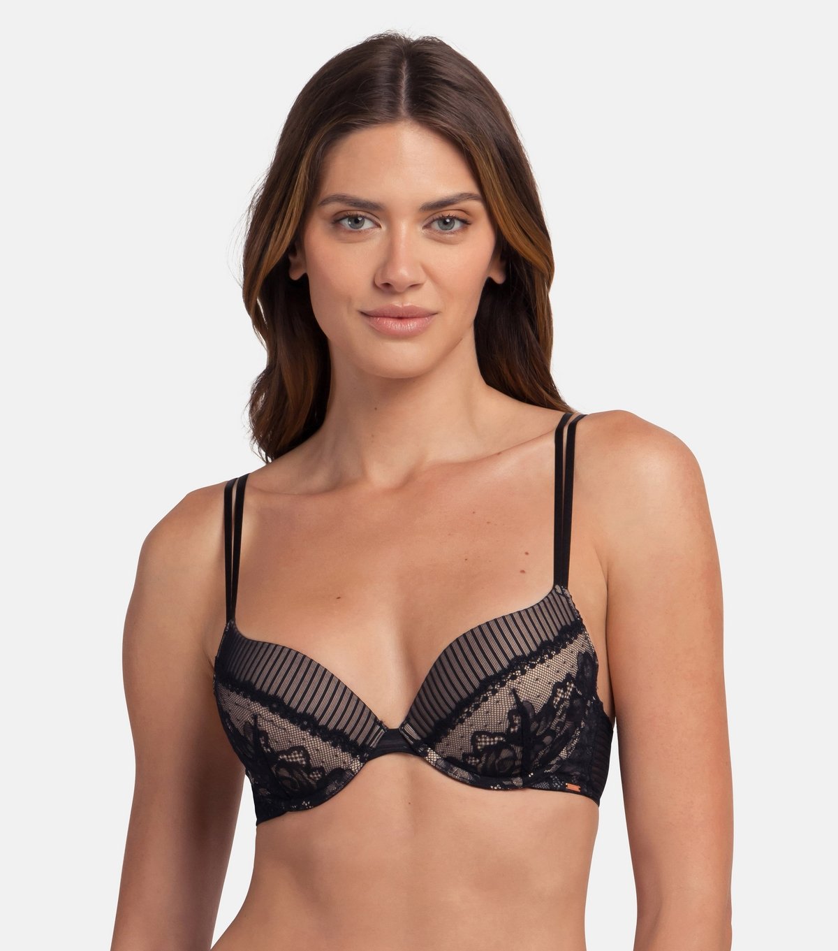 The Dorina Black/Brown Lace Panelled Wired Bra is ideal for casual, evening, date-night.