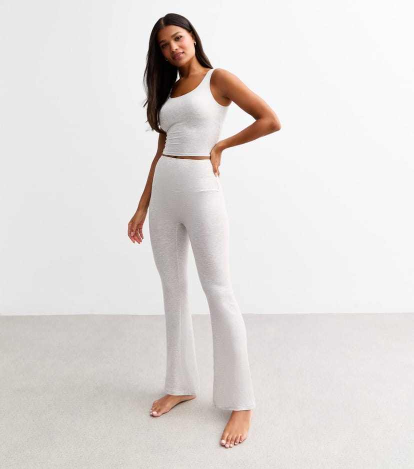 The Dorina Grey Ribbed Flared Leggings is ideal for casual, everyday.