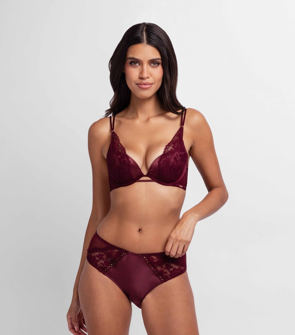 The Dorina Red Satin Lace Trim Plunge Bra is ideal for everyday, special occasion.