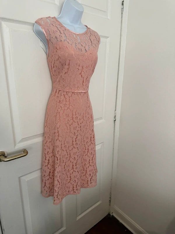 The Dorothy Perkins Pink Lace Skater Dress Size UK 14 is available in sizes M.