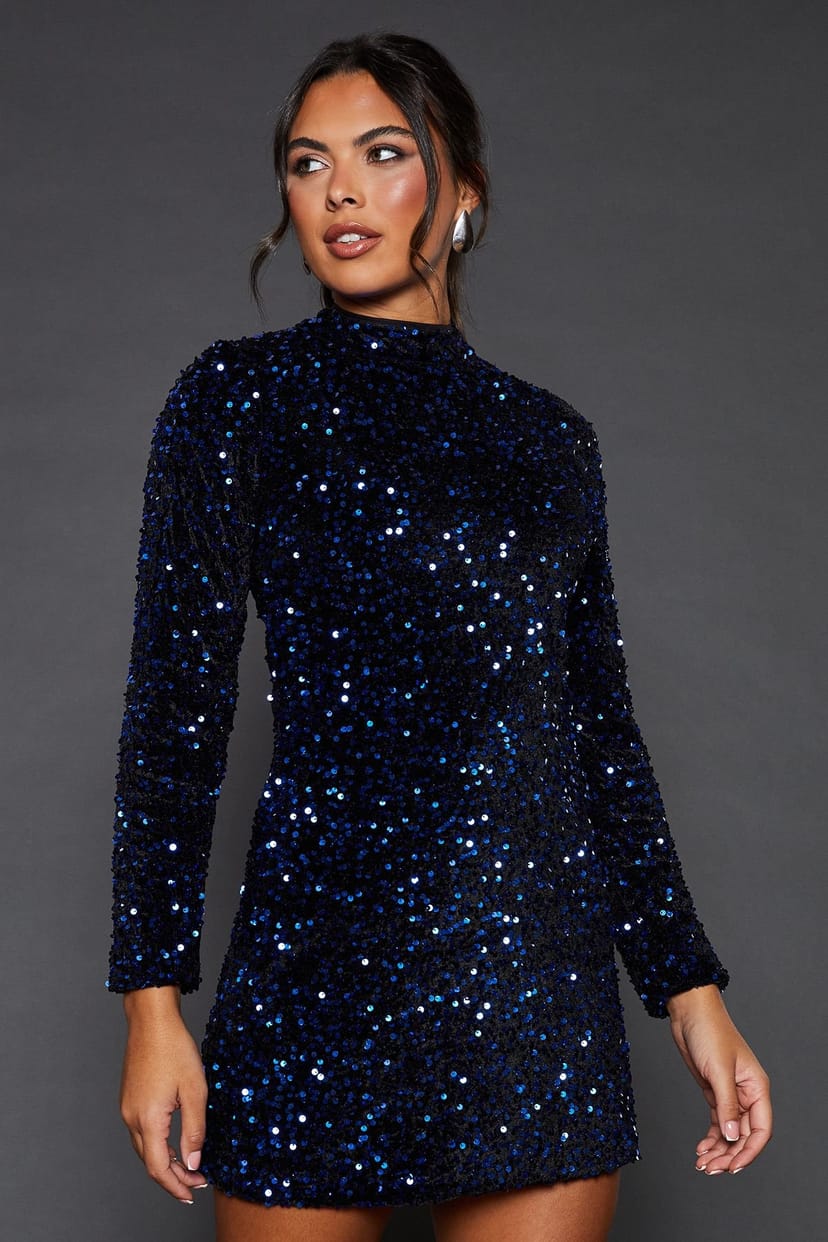 The Dorothy Perkins Blue Sequin Mini Dress is ideal for evening, party, date-night.