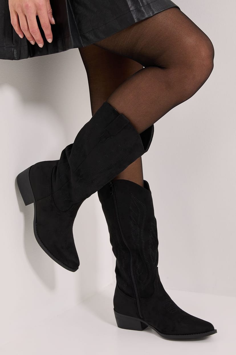 The Dorothy Perkins Black Faux Suede Western Calf Boots is made from faux suede.