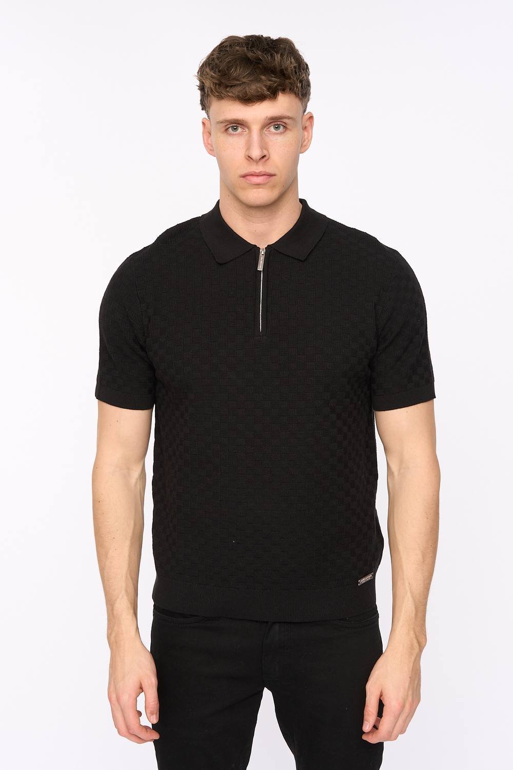 The Duck and Cover Black Textured Zip Knit Polo Shirt is available in sizes L.